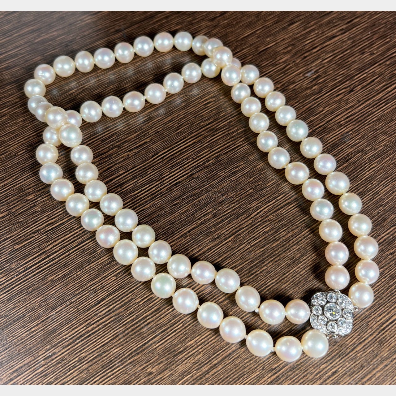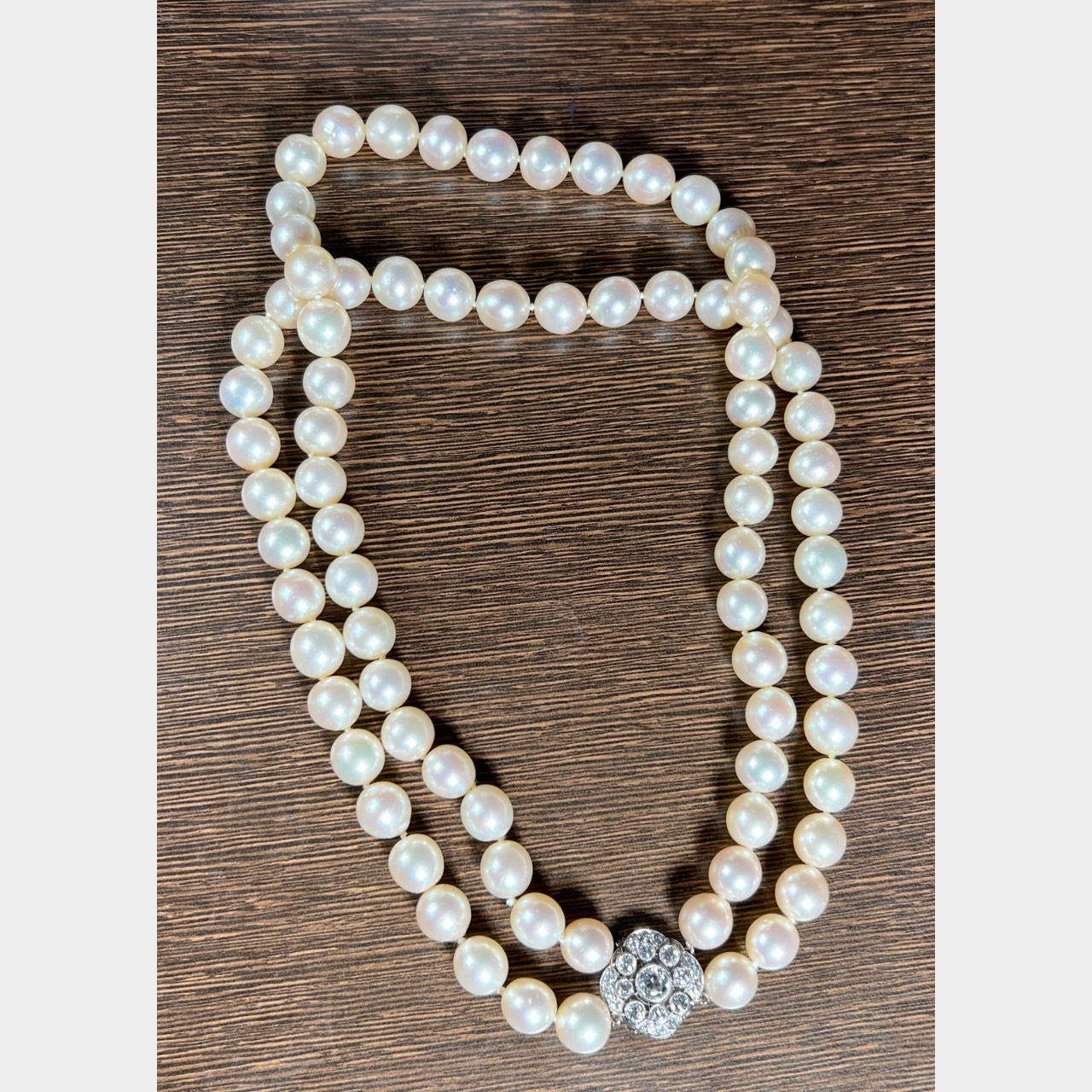 Art Deco Platinum GIA Certified Pearl & Diamond Necklace